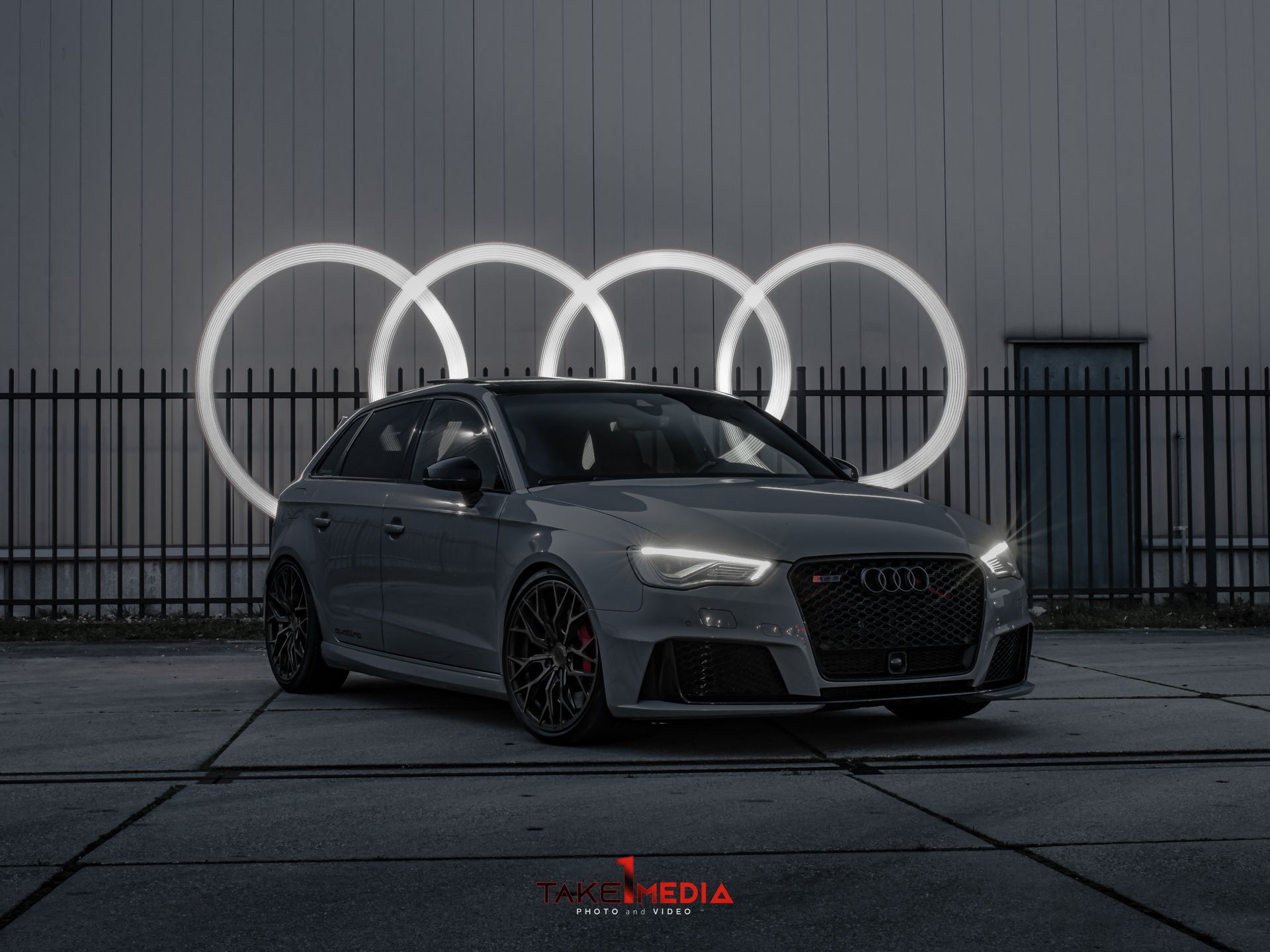 Fotoshoot voor deze ontzettend gave Audi RS3 voor zijn sociale media pagina